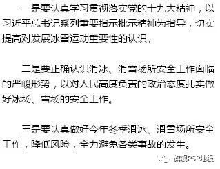 未雨綢繆,提前布置,確保廣大人民群眾度過一個快樂、幸福、健康、安全的冰雪季;對存在安全隱患的冰場、雪場要采取堅決的關(guān)閉和整改措施,對違規(guī)運(yùn)營的,要以“零容忍”的態(tài)度處理到位