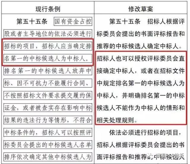 其中,最受大家關注的一點是:招標人可以直接確定中標人。該條修改前后對照如下: