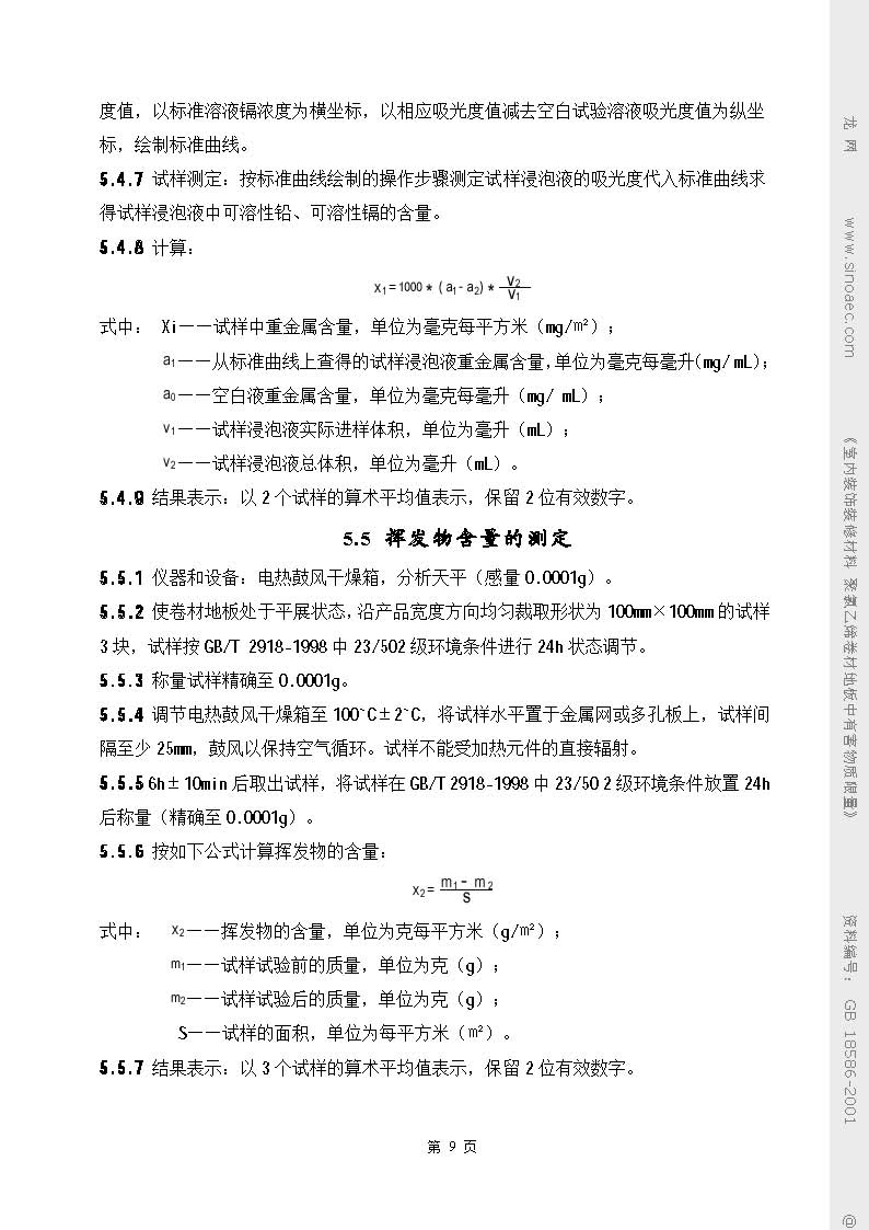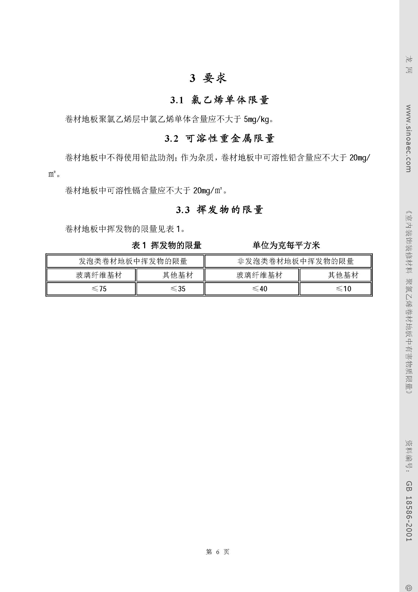 室內(nèi)裝飾裝修材料聚綠乙烯卷材地板中有害物質(zhì)限量