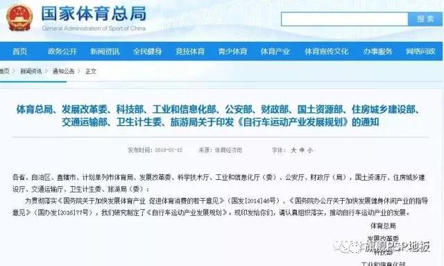 為貫徹落實《國務院關于加快發展體育產業 促進體育消費的若干意見》(國發[2014]46號)、《國務院辦公廳關于加快發展健身休閑產業的指導意見》(國辦發[2016]77號),我們研究制定了《自行車運動產業發展規劃》。現印發給你們,請認真組織落實,推動自行車運動產業的發展